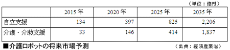 介護・福祉に関するロボットはさらに、自立支援、介護・介助支援の2つの用途に分類し、それぞれ以下のような将来予測をしている。