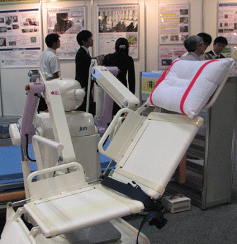 国際福祉機器展、国際モダンホスピタルショウといった介護ソリューションの展示会でも、介護ロボットの出展は増えている。昨秋の第36回国際福祉機器展(H.C.R.2009)で注目を集めたのがCYBERDYNEの「ロボットスーツHAL」、パナソニックの「ロボティックベッド」だ。